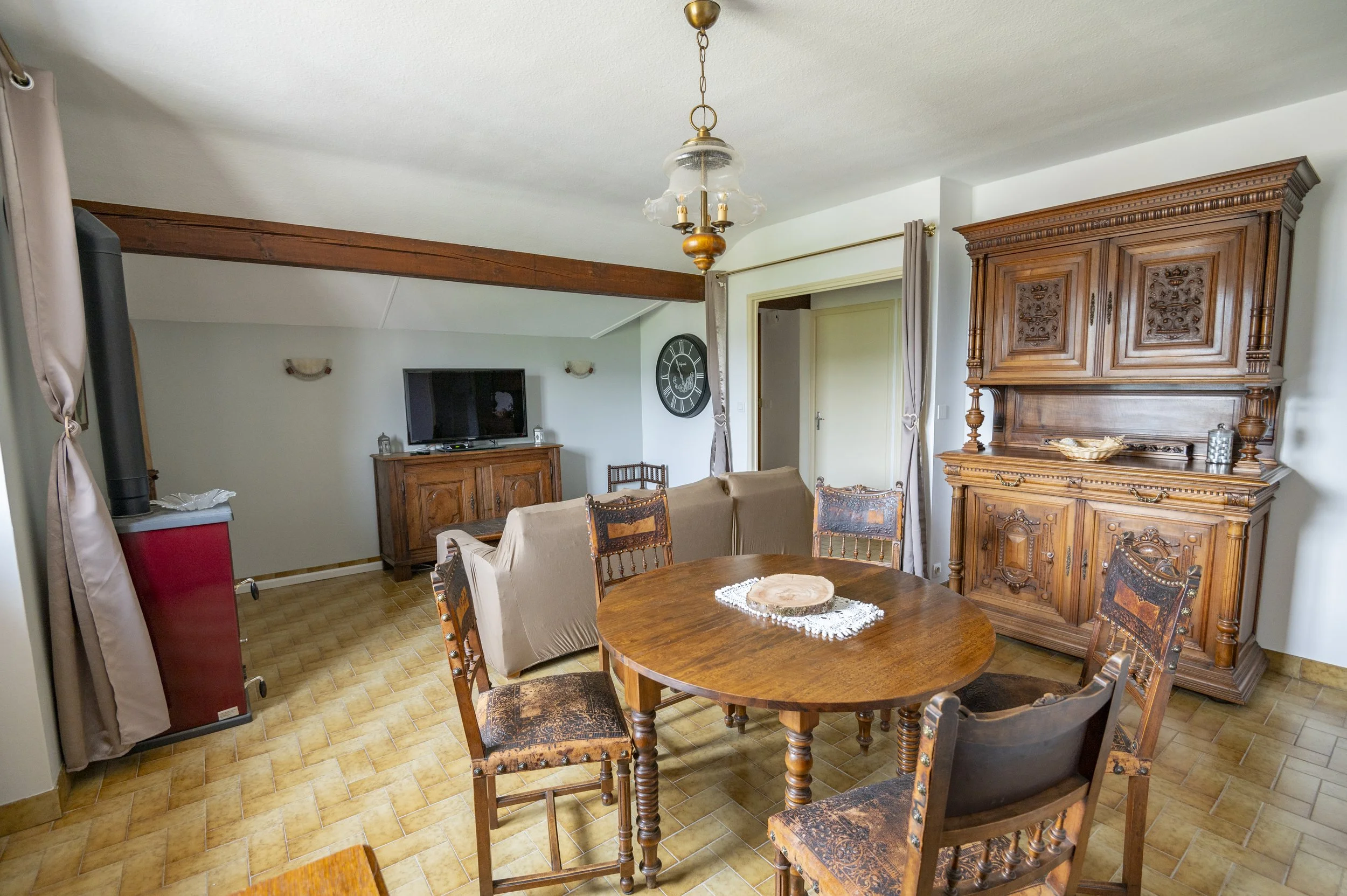 Un salon confortable équipé d’un canapé d’angle, d’un écran plat et d’un joli poêle à bois (possibilité de l’allumer pour votre arrivée)